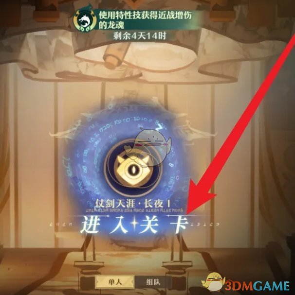 3、在仗剑天涯这个赛季关卡内,按照关卡的难度进行配队选择梦灵挑战;