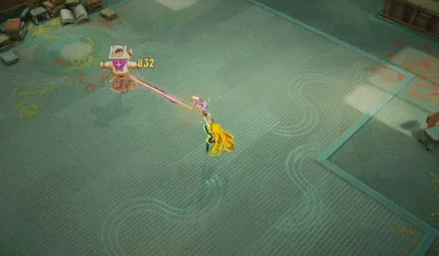 她的普攻“岔径星光”会发射出射线攻击敌人,同时召唤出离航路牌,一段时间后路牌小时,这个路牌与本体之间会形成一个相互连接的射线,如果敌人碰触到射线就会持续遭受到伤害。