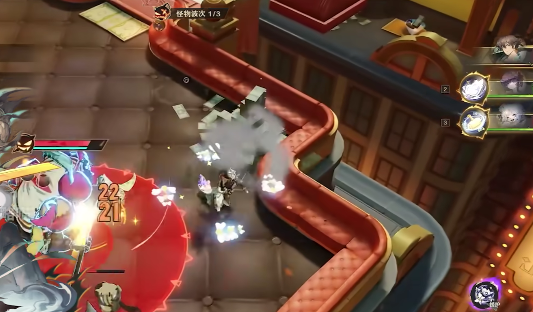 其主要的战斗技能有三个,第一个技能属于普通攻击技能,逍遥可以拿起手中的刀刃对前方目标发起四次连段攻击,当攻击的数值叠加到第四次时,逍遥会积攒攻击能量,并且在攻击能量蓄满时,于第五次普通攻击发挥出额外的攻击效果。