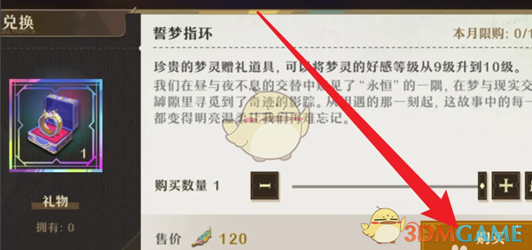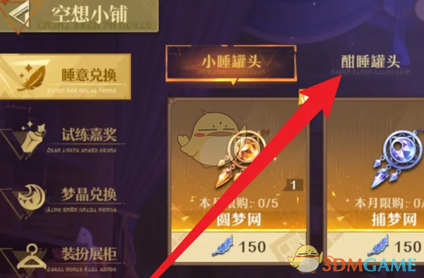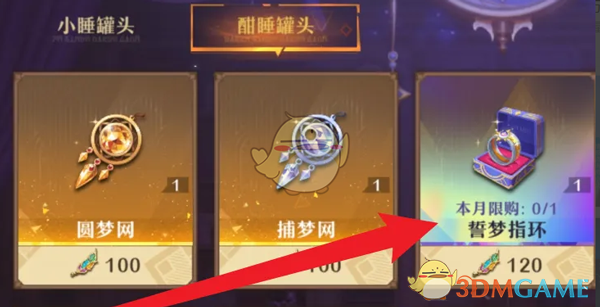 答:在空想小铺点击酣睡罐头,选择誓梦指环进行购买即可获得。