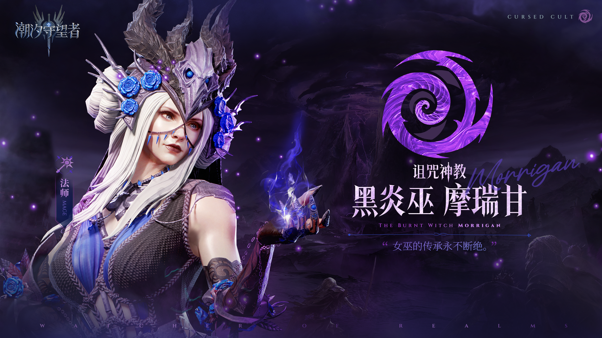 诅咒神教的神秘阵营领袖摩瑞甘。她的炸弹和广域魔法可对群体造成毁灭性打击。