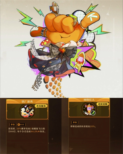 特性:消耗能量条,发射范围弹幕,aoe技能,技能释放完毕自动装填金币子弹。