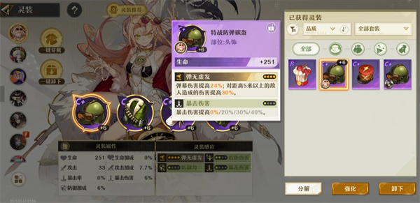 词条选择:暴击几率,暴击伤害,弹幕伤害,攻击力加成or普攻伤害。