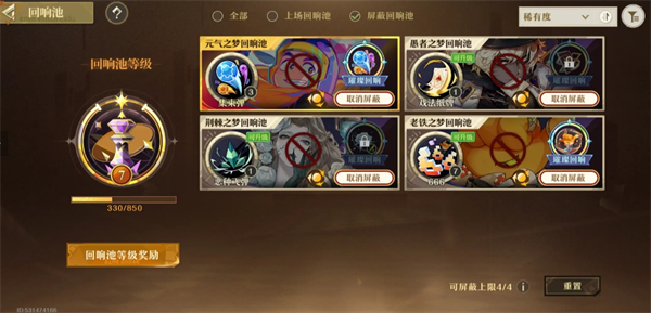 副角色同理,镜之梦不屏蔽同流派角色,副本里再选放在仓库解答之梦的回响,增加清怪效率,仓库角色按自己需求屏蔽即可。