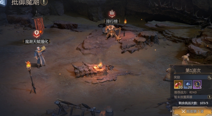 4、建议大家在前期尽量多完成魔潮的抵御关卡,这样可以快速获得大量通关奖励和扫荡奖励。