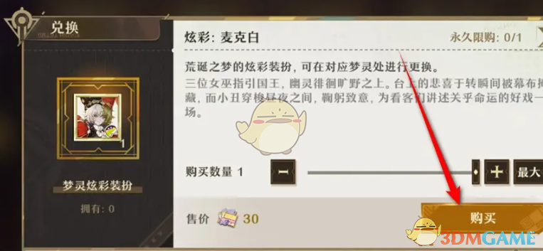 4、最后在弹出的窗口中,点击购买按钮即可获得炫彩麦克白装扮