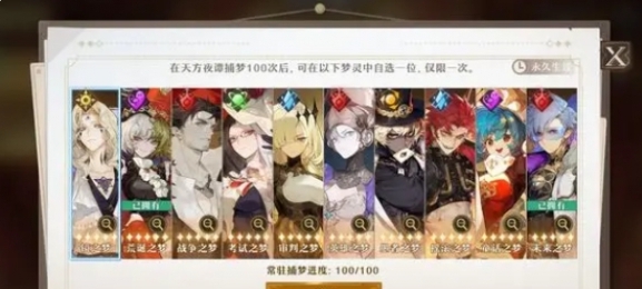 《无尽梦回》天方夜谭捕梦100次后,玩家可以获得一次免费自选五星角色的机会,有很多小伙伴不知道自选五星选哪个比较好,接下来就让小编带大家一起来看看吧。