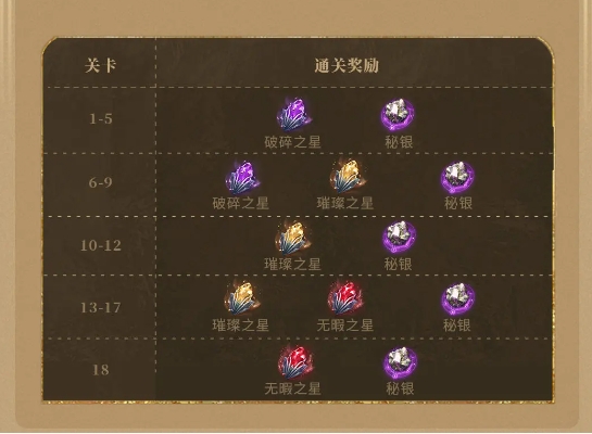 6、神器材料副本共有18个关卡,通关每个关卡都能固定获得秘银和1-2种陨星。
