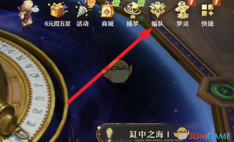 2、进入游戏大厅页面后,根据箭头指示点击编队选项