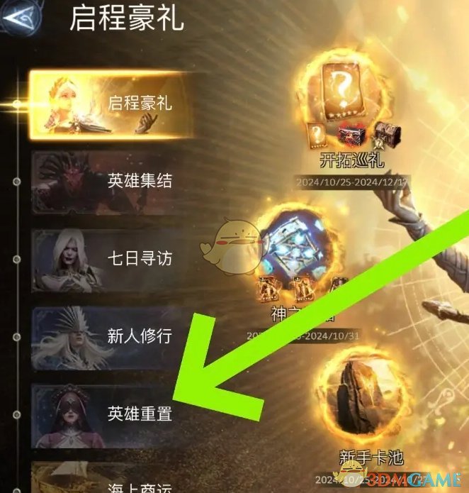 1、首先我们进入启程豪礼页面,点击英雄重置玩法进入;