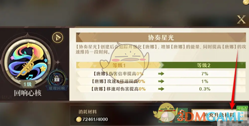 答:在梦灵页面,点击技能,消耗材料点击确认即可完成升级。