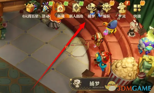 1、进入游戏后在大厅页面,点击右上角的捕梦图标