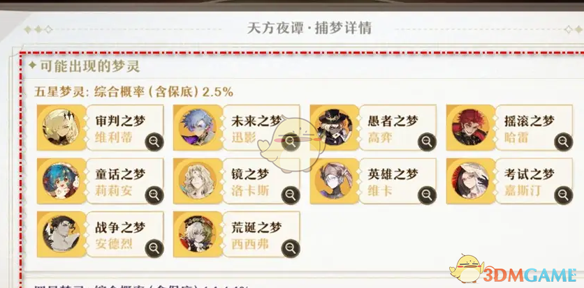 3、点击后会自动跳转,最后可以在下图页面看到该类别的捕梦概率详情
