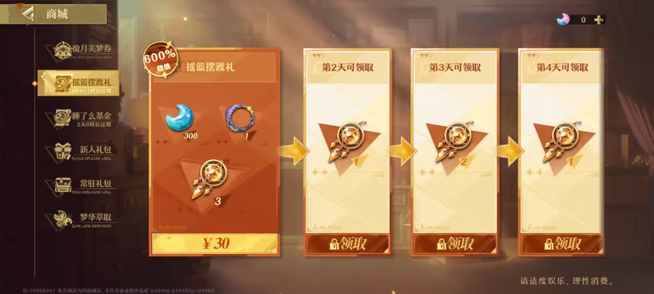 用月卡给的150梦华买睡了吗基金的前两档,剩下的梦华买常驻礼包的祈梦礼盒划算。