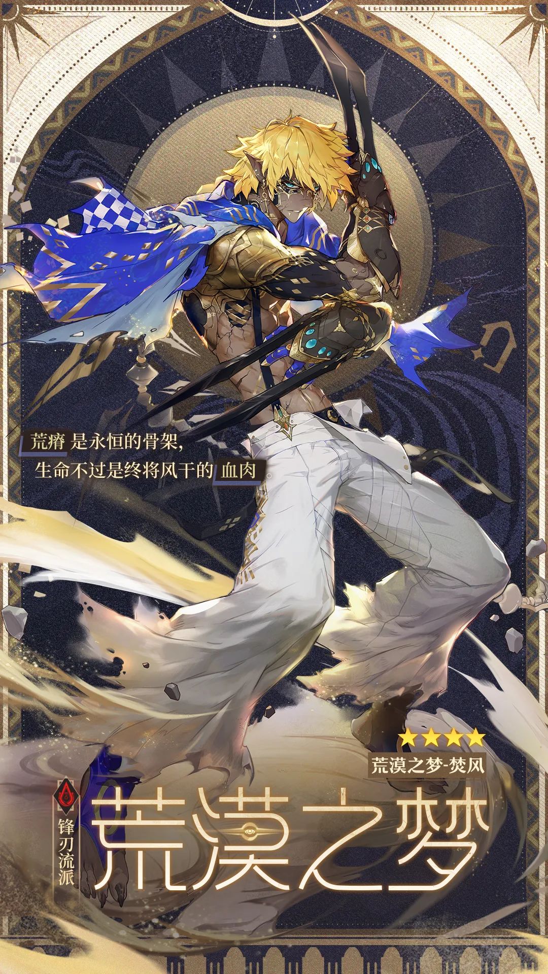 虽说是一名锋刃流派的四星梦灵,但他可是黑皮+黄毛啊!这个组合的杀伤力不亚于白毛+红瞳,再搭配这样的台词,荒瘠是永恒的骨架,生命不过是终将风干的血肉。在别的游戏里,像焚风这样的一般都都是主角!救救救救....这绝对的畅销梦偶!