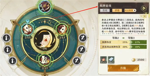 愚者之梦的攻击方式独特,通过投掷卡牌打击敌人。前两次投掷会生成【纸牌】,这些纸牌可以在击中目标后弹射至其他敌人,最多弹射2次,从而在战场上造成连锁反应。
