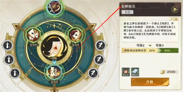 璀璨回响--逆转棋局:召唤2个【棋子傀儡】,【棋子傀儡】每隔-段时间发射【纸牌】。