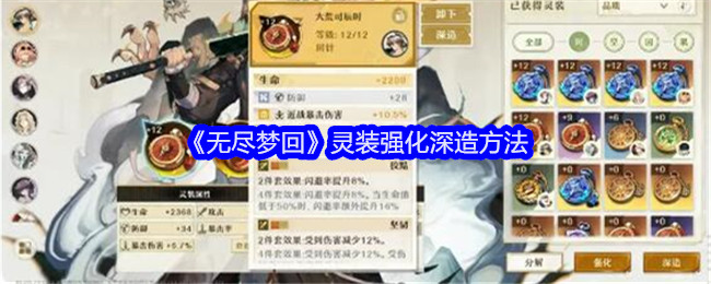 无尽梦回游戏灵装系统,也就是熟悉的装备系统!消耗强化材料提升灵装等级,强化可以增强灵装的主属性词条,接下来给大家带来了《无尽梦回》灵装强化深造方法!