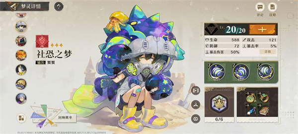 那当前20级浅眠域就有17关,在前期没有大的数值压力不需要治疗角色的情况由此我创造了以【社恐之梦】为主要核心的开荒配队。