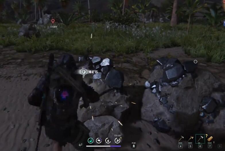 4、在相应位置可以找到锡矿石,按f进行开采即可。