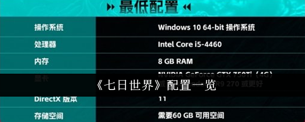 以上就是小编整理带来的七日世界配置一览,更多相关游戏攻略,请关注这里下载站!