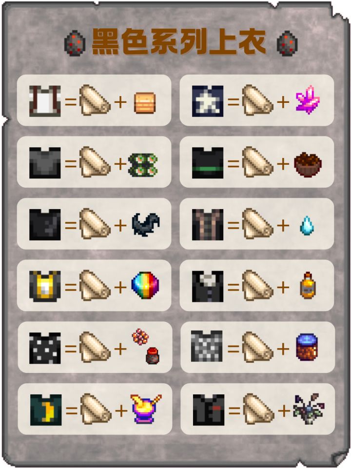 以上就是小编整理带来的星露谷物语黑色系列上衣有什么配方,黑色系列上衣配方,更多相关游戏攻略,请关注手游网!