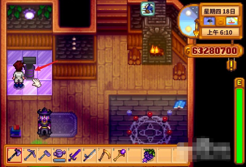 完成任务后,玩家便能自由进出法师塔,并进入塔内的法师商店。商店中出售多种稀有魔法物品,黄金钟就位列其中。它的外观类似一块金色怀表,功能是激活后清除农场内所有杂物,包括杂草、石头和枯木,同时防止围栏腐烂。这一效果每天自动触发,极大减轻了农场维护负担。