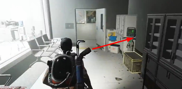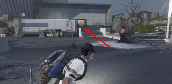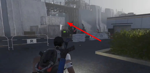 2、来到下图可以在左侧看到厂房建筑,然后顺着建筑楼梯来到房顶位置