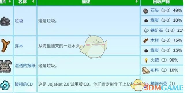 4、回收机则需要钓鱼等级达到4级才能解锁配方,制造材料:木材25、 石头25、铁锭1。