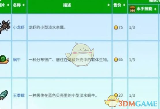 3、蟹笼需钓鱼达到3级才能解锁配方,制造材料:木材40、铁锭3、木材25、铜锭2。