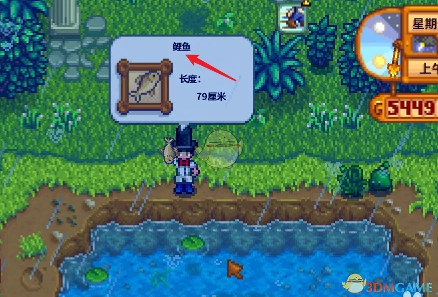 2、接着带着鱼竿,前往河边钓鱼,获得制作生鱼片的原料鱼类;