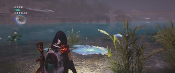 2、接着到达之后,就可以看到面前的荷叶,需要玩家踩在这个荷叶上。