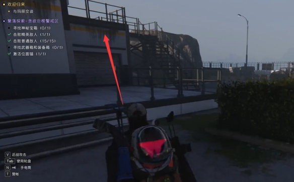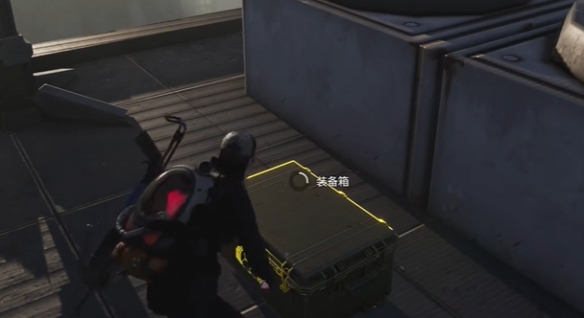 3、接着爬上建筑的顶端,就可以在此处开启一个装备箱