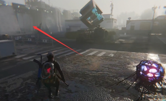 5、当玩家来到上方后,前往箭头所指的位置进行移动到建筑中