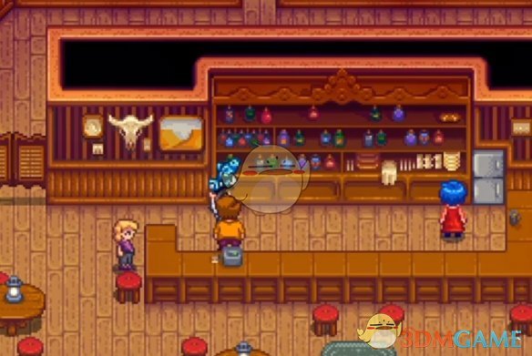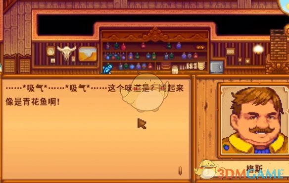 3、钓到青花鱼后,去到酒吧这里将其赠送给格斯。