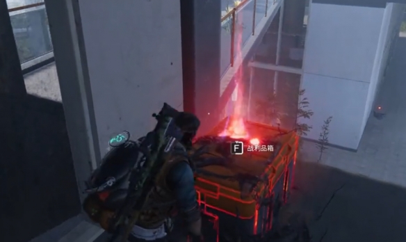 3、然后前往建筑物的3楼来到外侧,可以开启一个战利品箱