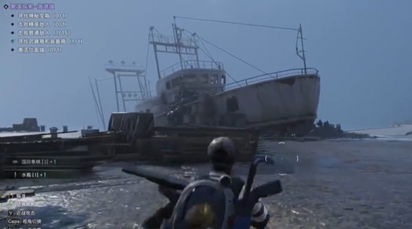 7、接着从地下室上来后,一路向西南方向走来到港口,可以找到一搜废弃的船