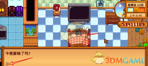 4、申请之后,回到房间睡觉,点击是完成睡觉;