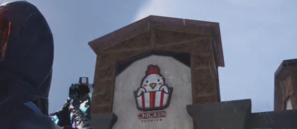 2、到达目的地,可以看到一个有鸡标志的房子。