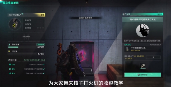 2、到达后有几率看到核子打火机,然后靠近点击一下即可收容