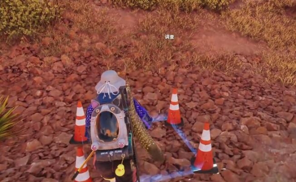 3、到达后在这里可以看到四个锥桶,接着靠近和他们进行互动