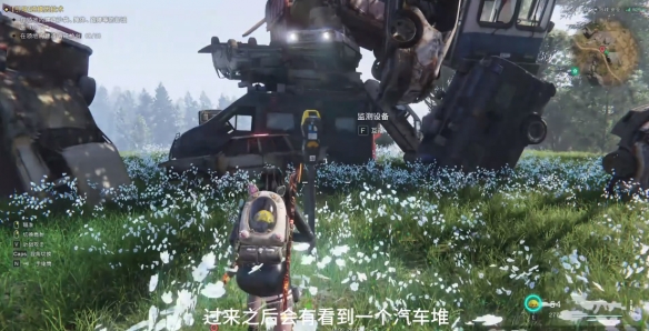 2、到达后可以看到汽车堆,接着上去跟监测设备互动