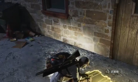 5、然后来到这里的一个建筑的顶端,可以开启一个武器箱