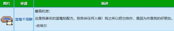 触发条件:与皮埃尔的好感度到达3颗心后,他会在邮件中给玩家一个蓝莓千层酥食谱。