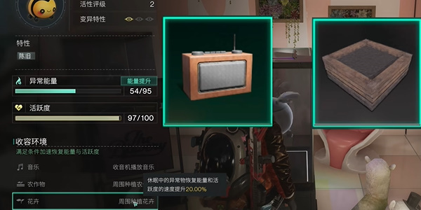 4、最后玩家捕捉后将其置于有音乐、农作物和花卉的旁边,可以迅速恢复能量