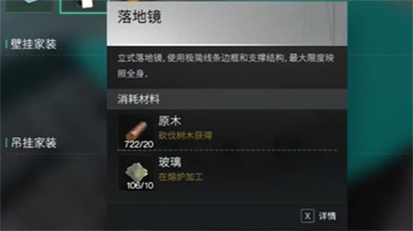 1、进入自己的领地后,在家具栏目中,找到并选择“落地镜”进行制作。