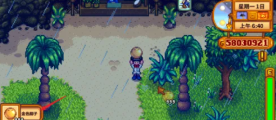 2、注意:金色椰子不能使用晶球破开器打开,并且第一次砸开金色椰子后可以获得一个金色核桃。