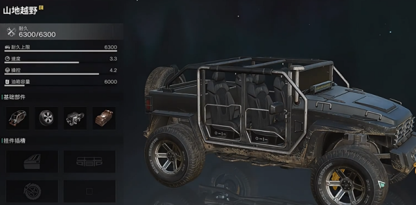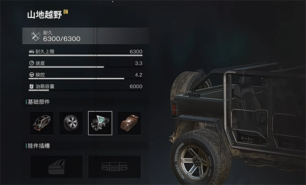 4、最后玩家可以在右侧找到山地越野,安装零件即可制作完成吉普车