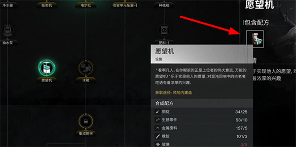 3、点击后可以在底部看见愿望机,然后进行解锁配方