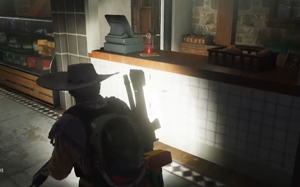 答:在熊栖雪场(1190,5137)屋子的柜台上拾取